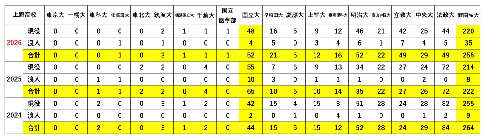 【上野高校】大学合格実績