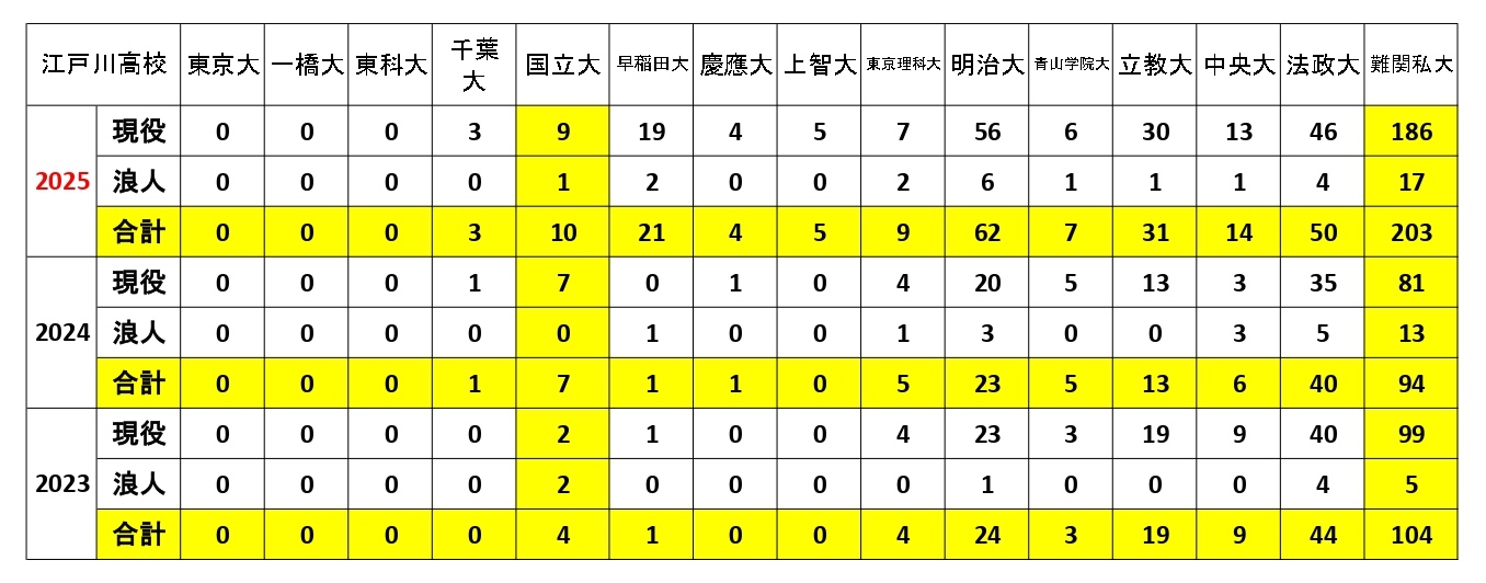 大学合格実績『江戸川高校』編