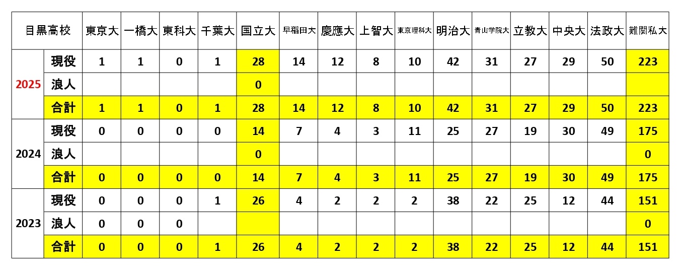 大学合格実績『目黒高校』編