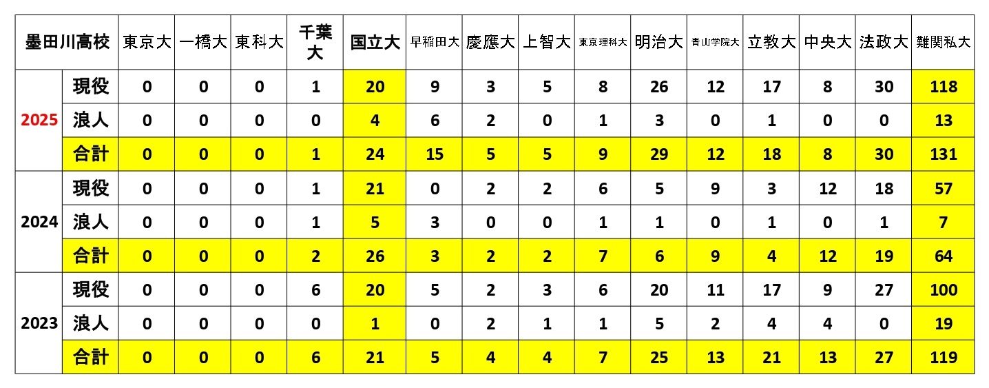 大学合格実績『墨田川高校』編