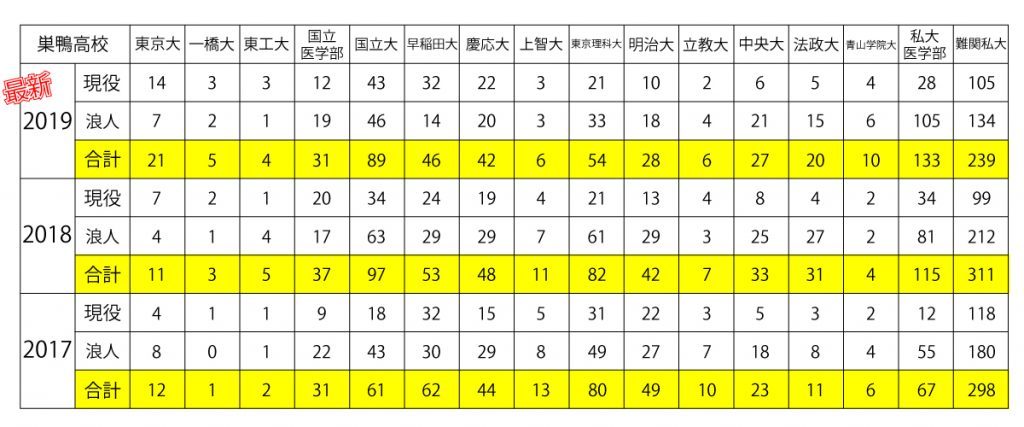 今回は【巣鴨高校】の最新版【2019年大学合格実績】を速報でご紹介致します。