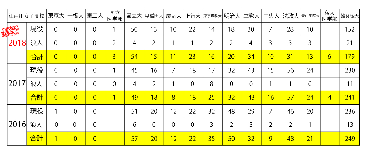 今回は【江戸川女子高校】の最新版【2018年大学合格実績】を速報でご紹介致します。