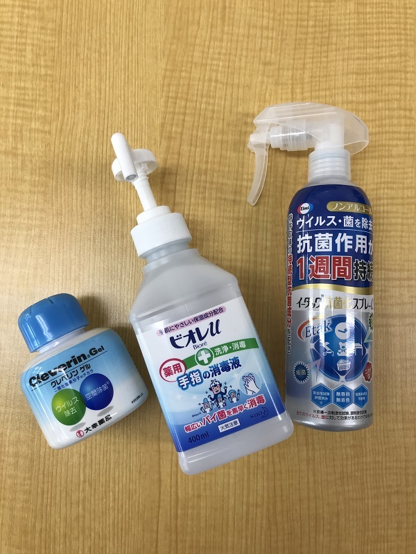 消毒、除菌、予防には念には念を入れて。寒い夜のためにカイロも準備してあります。